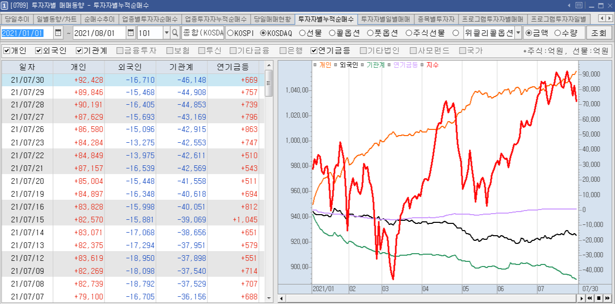 ☞ 코스피&코스닥(2021년 1월부터 7월까지): 개인 매수, 기관&외국인 매도