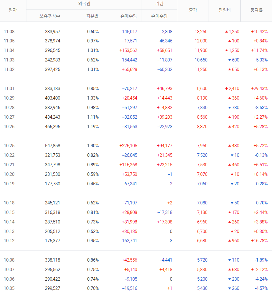 차트에서도 우상향의 모습을 보여주고 있으며 기관이 매수가 돋보인다.