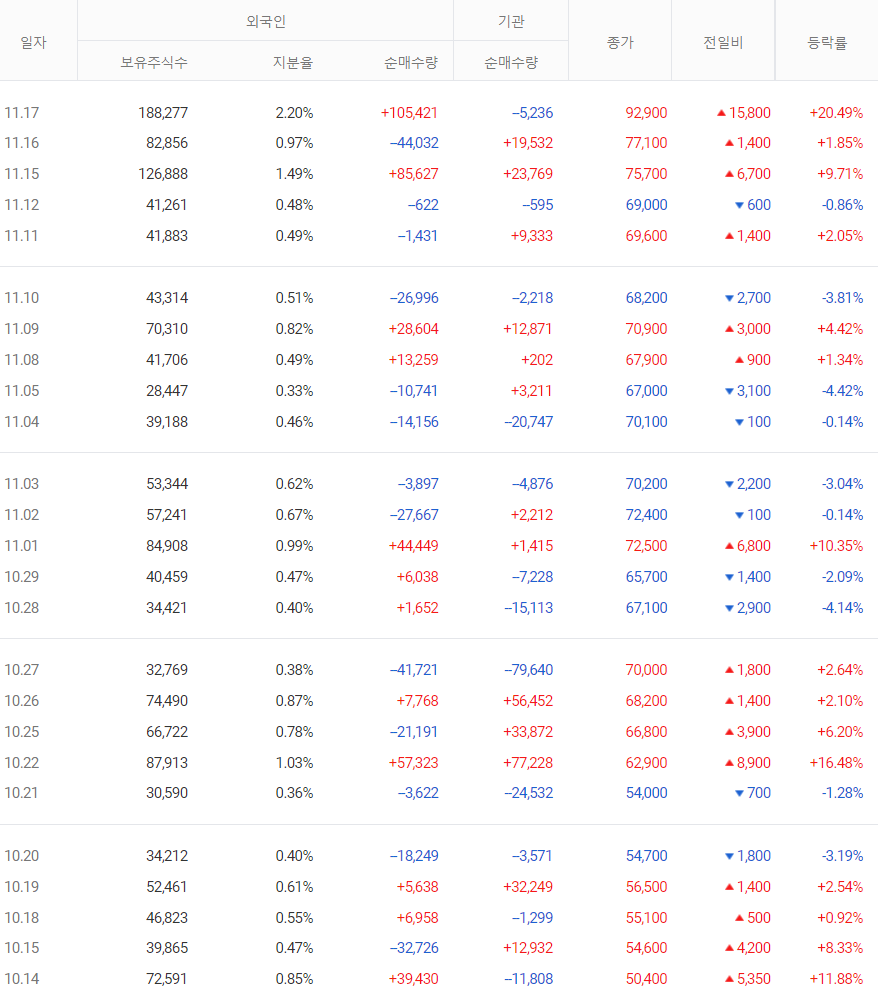 ㄱ) 10월 1일부터 현재까지 개인 305.7억 원 매수, 외국인 126.4억 원 매수, 기관 26.1억 원 매도 중이다.