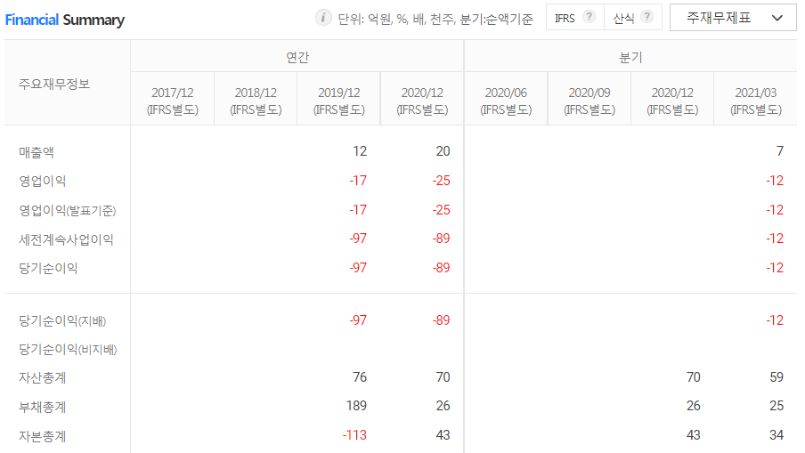 ㄱ) 2021년 3월 전년 동기 대비 별도기준 매출액은 61.6% 증가, 영업손실은 285% 증가, 당기순손실은 10.4% 감소하였다.