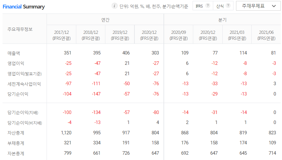 ㄱ) 2021년 6월 전년 동기 대비 연결기준 매출액은 66.6% 증가, 영업손실은 52.3% 감소, 당기순손실은 57.8% 감소하였다.