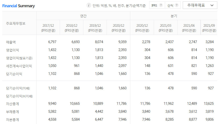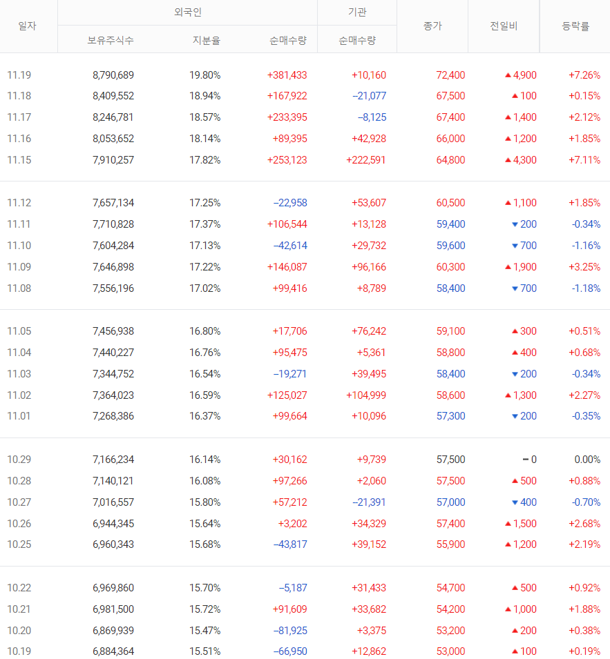 ⓐ 11월 16일 신한증권에서는 목표주가 9만 원, 투자의견 매수이며, 3분기 영업이익이 1,190억 원으로 전분기 대비 46.2% 증가를 기록했으며 2022년 상반기까지 수주 물량을 확보한 것으로 파악했기 때문에 실적이 향상될 것이라고 전망하였다.