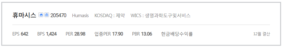 휴마시스는 셀트리온과 코로나19 바이러스 감염증 자가 검사 키트를 공동 개발하였으며 미국 식품의약 처인 FDA로부터 긴급 사용 승인을 받은 모멘텀으로 작년 6월에 상한가를 6 거래일 지속한 주가의 흐름이 있다. 수급에서는 최근 개인의 매수세가 들어오는 것은 다소 부정적이지만 기관이 매수세는 긍정적으로 받아들일 수 있다. 3분기 영업이익은 전년 대비하여 7,925% 상승한 698억 원으로 최대 금액이다.