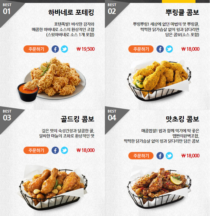 | 교촌허니콤보 | 1.8만원 | 2만원 | 11.11% |