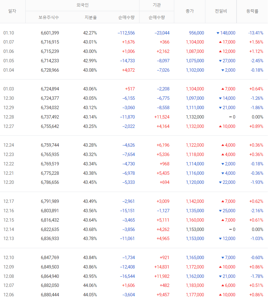 ⓐ 1월 10일 메리츠증권에서는 목표주가 1,200,000원 투자의견 중립을 제시하였으며, 2021년 4분기에는 화장품이 역성장할 것이라고 예상하였다.