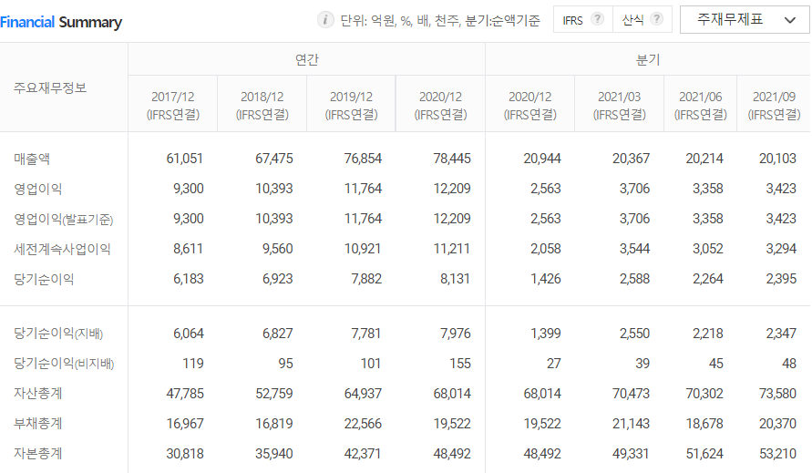 수급에서는 개인들의 매수세가 지속되고 있는 상황이다. 실적에서는 코로나19의 영향으로 중국에서의 매출 부진과 면세점 매출이 줄어들고 있지만, 내년의 실적 전망은 상승세이다. 재무에 있어서는 현재의 주가가 하락하는 게 이상할 정도로 탄탄한 재무구조를 갖춘 회사이다. 매출을 구성하는 아이템들이 필수 생활용품 등으로 여름과 겨울 모두 꾸준하게 판매되어 매출을 이끌어 낼 수 있다.