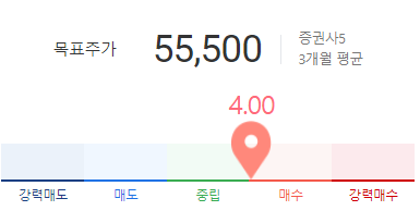 증권사 5 업체 3개월 평균 목표주가는 55,000원이다.