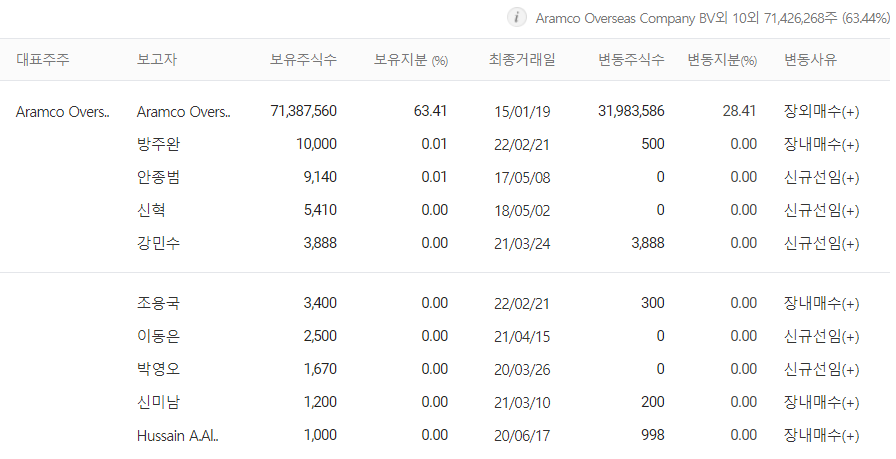 S-OIL의 실적은 국제 유가가 상승하게 되면 유리한 방향으로 흘러가게 된다. 러시아와 우크라이나의 전쟁으로 탈러시아가 지속된다면 S-OIL에게는 호재가 될 수밖에 없다. S-OIL의 올해 배당은 보통주 1주당 2,800원으로 시가 배당률 3.2%이다.