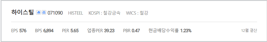 원자재 가격의 급등은 철강산업에도 나타나게 되었다. 단기적인 실적은 좋아지겠지만, 우크라이나와 러시아의 전쟁이 장기화된다면 실적에 악영향이 될 수 있다. 투자 지표인 PER과 PBR로 보았을 때는 상승 여력이 충분하다. 시총이 734억으로 작은 종목이라서 개인과 외국인의 수급의 주체이다. 차트에서 나타나듯이 주가가 위, 아래로의 움직임이 크다. 특히 지금은 박스권 상단에 있으므로 주가의 반락에 주의가 필요해 보인다.