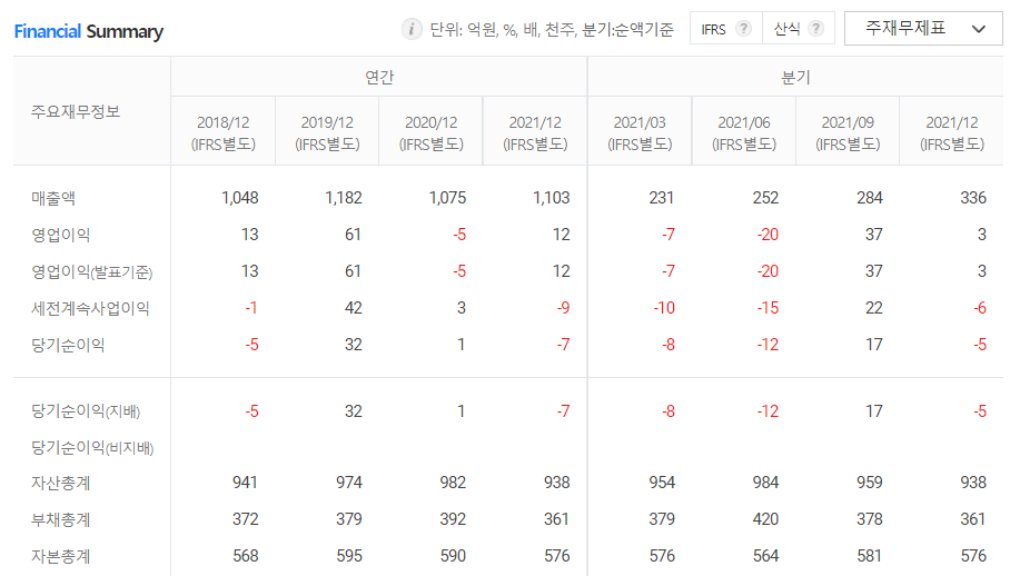 ㄱ) 2021년 9월 전년 동기 대비 별도기준 매출액은 5.6% 감소, 영업이익 흑자전환, 당기순손실은 77.4% 감소하였다.