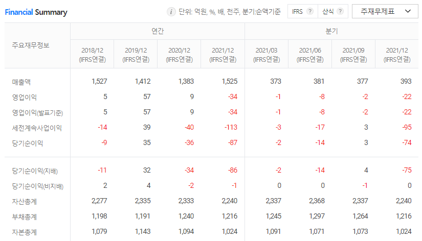 실적의 외형 성장은 커지고 있으나 이익률은 마이너스로 좋지 않다. 수급은 개인들이 주체가 되어 가고 있으며, 주가는 전고점을 뛰어넘어 상승하려는 움직임이 강하다.