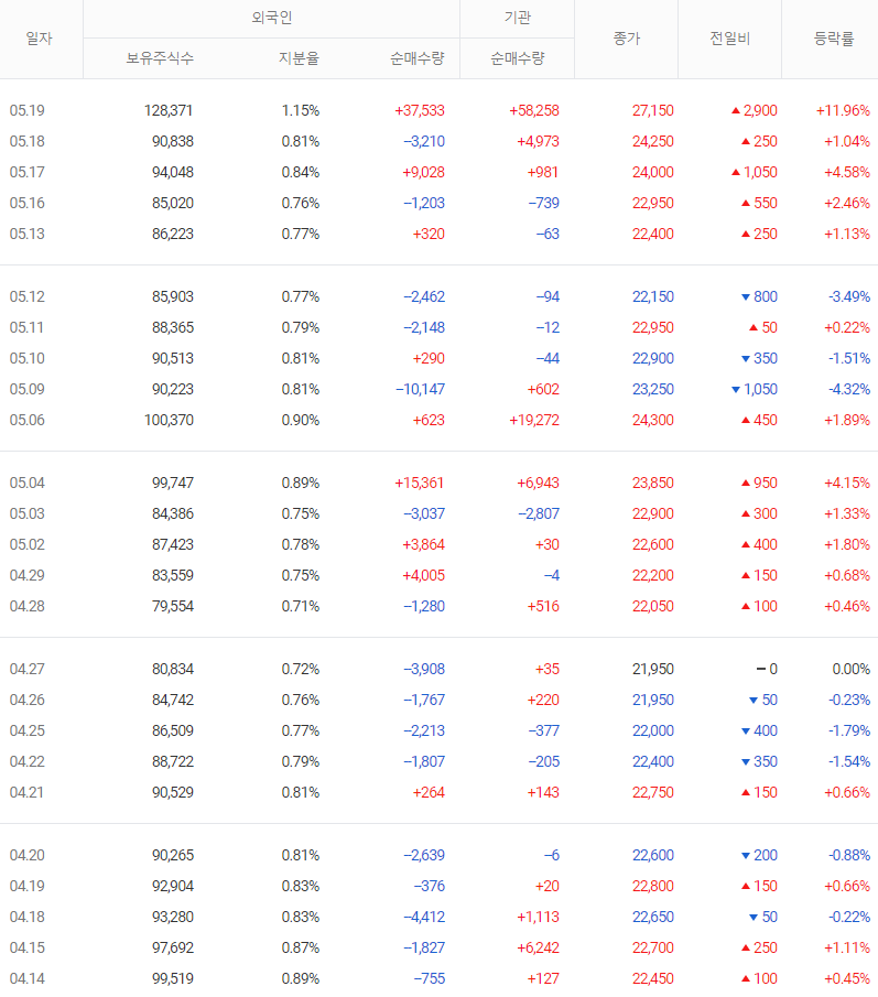 최근에 외국인의 수급이 들어오고 있다는 것은 긍정적이다.