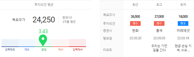 증권사 5 업체 3개월 평균 목표주가는 24,250원이다.