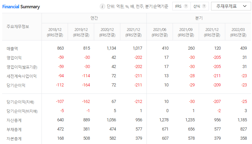 매출이 증가하고 있지만 아직까지 당기순이익은 적자이다.