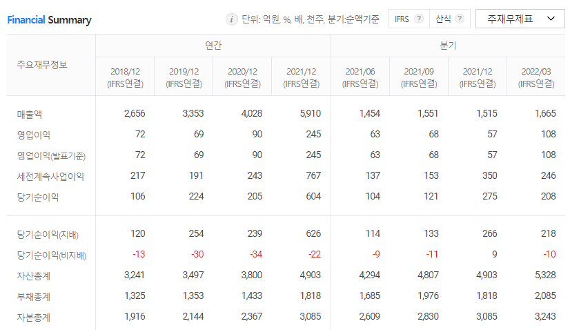 ㄷ) 모바일 사업과 관련된 관계기업투자(드림텍 및 나무가)의 이익 증가와 당기손익 공정가치 측정 금융자산의 평가이익 등으로 당기순이익도 크게 늘어나고 있다.