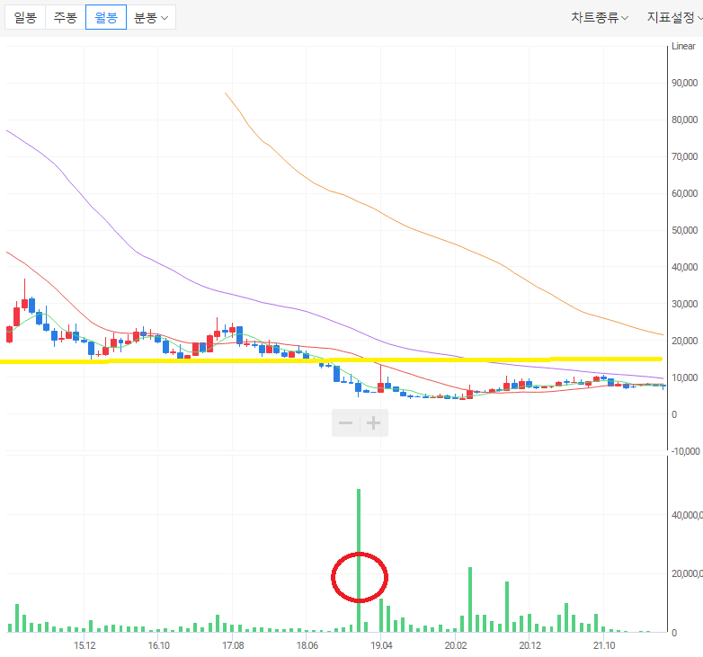 ㄴ) 월봉 차트에서 횡보하고 있다.