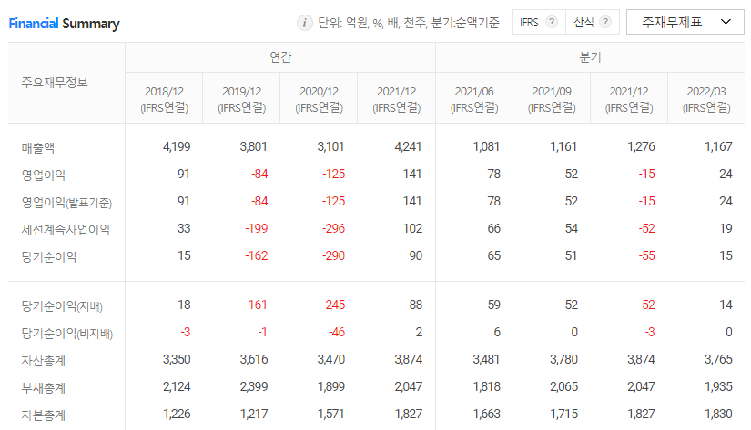 에스와이는 원자재 인상에 따른 판매 단가가 인상됨에 따라서 실적이 개선되었다.