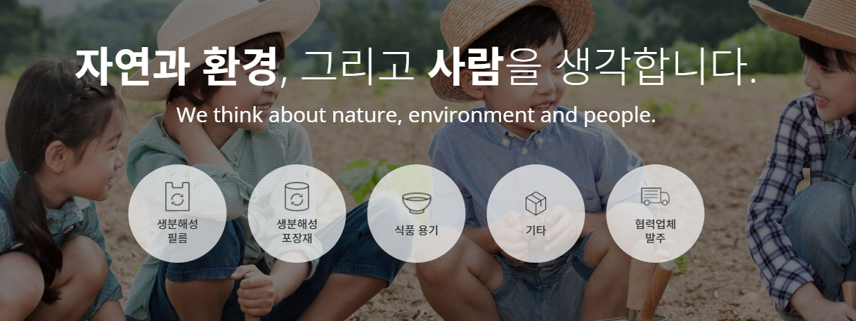 ㄷ) 친환경 수지인 PBAT와 PLA를 합성하여 사용함. 신규사업으로 일회용 위생장갑, 생리대 back sheet fim, 농업용 멀칭필름 등을 개발 중이다.