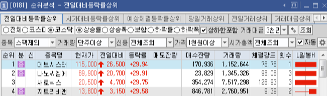 상한가: 4 상승: 245 보합: 55 하락: 1,127 하한가: 1