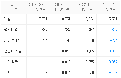 - 매출원가도 상당폭 증가했으나 판매비와 관리비 증가율이 매출액 증가율 대비 낮았고, 이에 따라 수익성이 개선, 영업이익은 전년 동기 대비 2배 이상을 기록하였다.