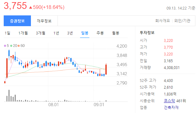 - 2000년 9월 29일 조립식 샌드위치 패널 제조 및 판매 목적으로 쌍용 실업으로 설립되었으며, 2015년 12월 29일 자로 코스닥 상장하였다.