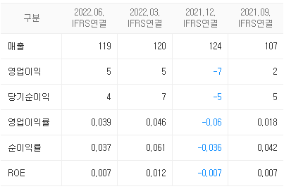 - 중장비 사업부문의 매출이 줄었으나, 주력인 유업 기계사업부문의 판매 호조로 2022년 1분기 매출액은 전년 동기 대비 23.6% 증가하였다.