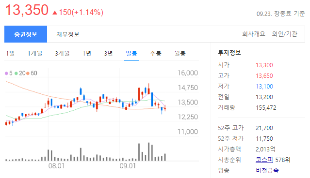 - 1995년 설립되어 2000년 코스닥시장에 상장하였으며 스테인리스 박판 제조업을 주된 사업으로 운영하고 있다.