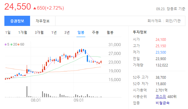 비철금속 관련주인 풍산, 고려아연, 현대비앤지스틸, 쎄니트, 이구산업, 삼아알미늄, 티플렉스에 대해서 알아보자.