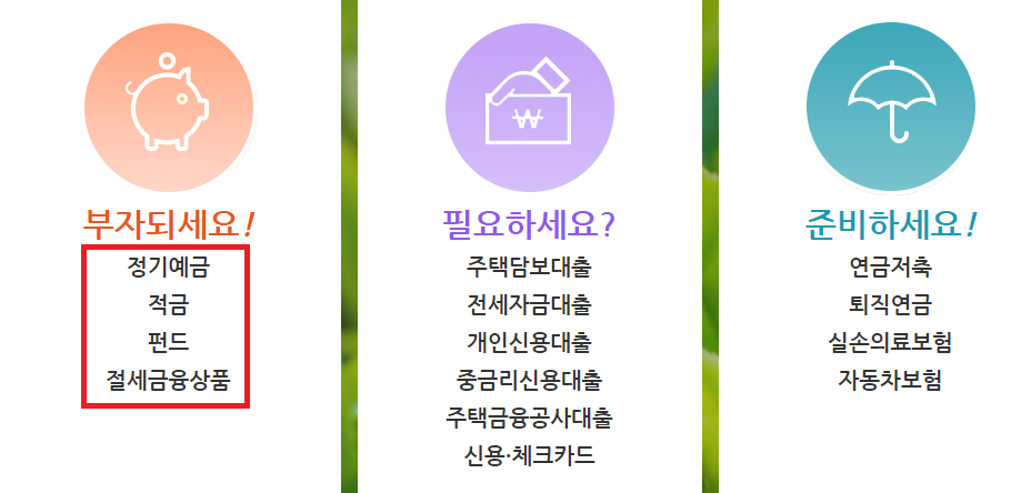 ㄷ) 왼쪽에 있는 정기예금, 적금을 클릭한다.