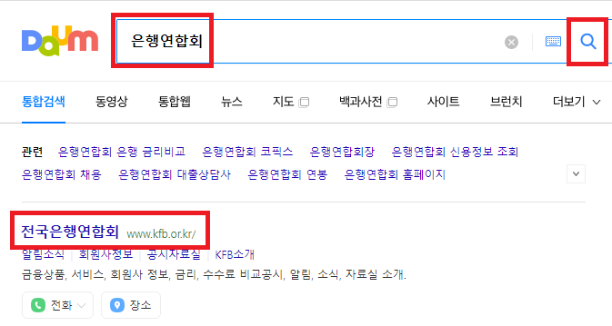 ㄱ) 다음에서 은행연합회를 검색 후 클릭한다.