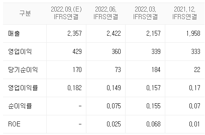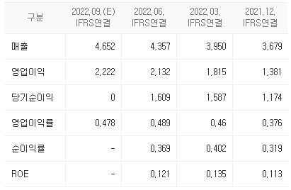 - 반도체 재료 부문은 독보적인 경쟁력을 유지하며 2022년 반기 매출액은 전년 동기 대비 35% 성장한 1,612억 원, 영업이익은 42% 증가한 492억 원을 달성하였다.