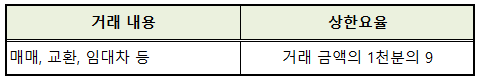 토지와 상가 매매, 교환, 임대차는 거래 금액 상한 요율은 0.09%이다.