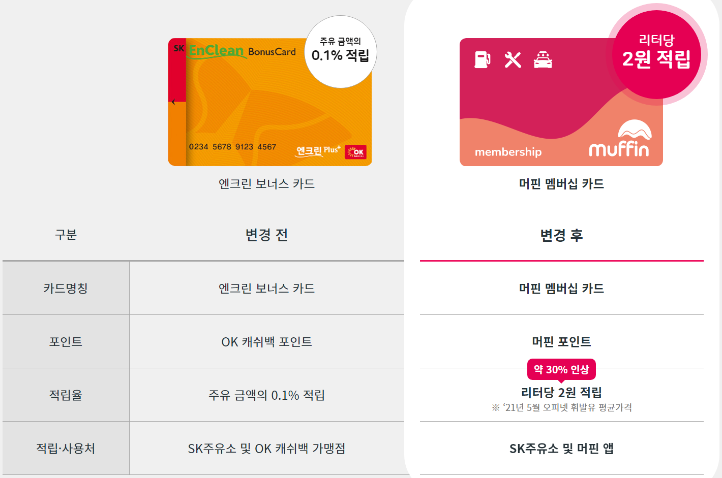기존에는 OK캐시백 포인트를 사용하였으나 머핀 포인트로 변경되었다.
