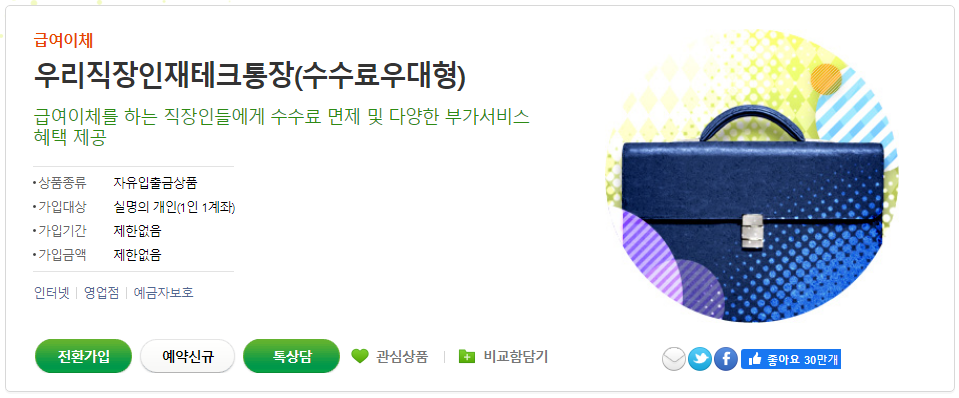 4. 우리은행 우리 직장인 재테크 통장 → 상세 혜택 보기