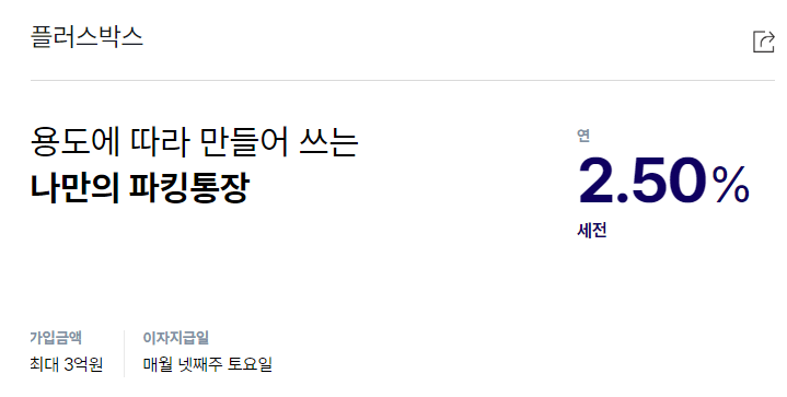 ☞ 금리: 가입금액 최대 3억 원 연 2.50%