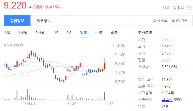 - 토목과 건축공사를 주요 사업목적으로 하여 1984년 12월 22일 자로 유가증권시장에 주식을 상장하였다.
