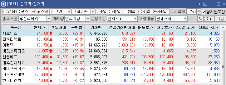 < 코스닥 250일 신고가 >
