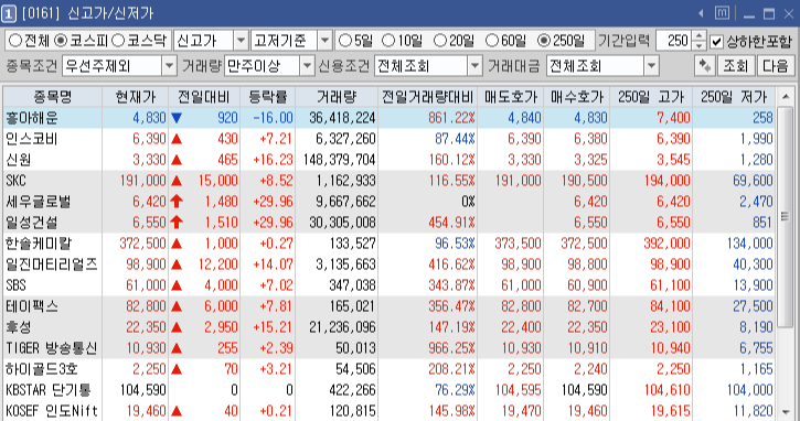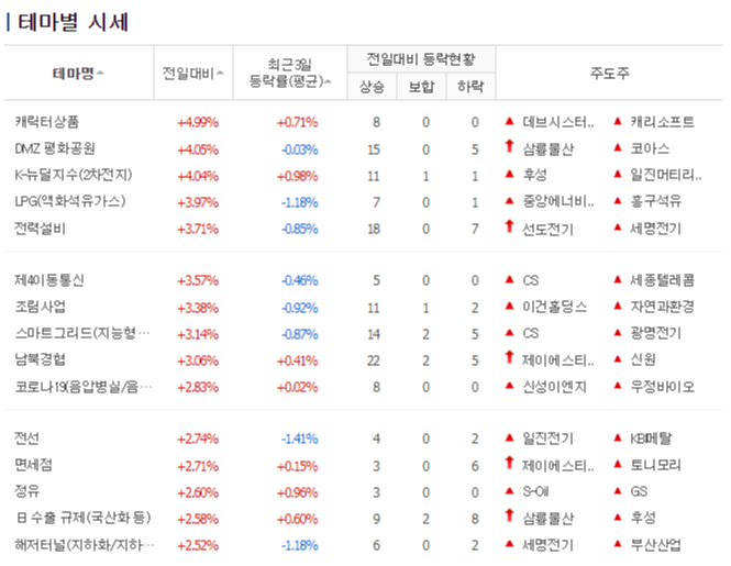 대북주, 오징어 게임 관련주, 건자재 관련주들이 신고가 흐름이 나왔다.