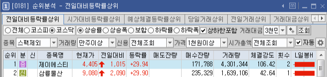 상한가: 2 상승: 694 보합: 90 하락: 649 하한가: 0