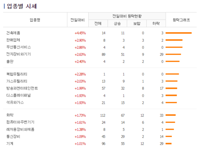 건설, 건자재 업체들이 금일 시장의 상승을 이끌었다.
