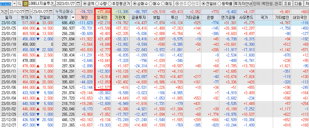 ㄱ) 최근에 개인은 매도하고 외국인과 기관이 매수하고 있다.