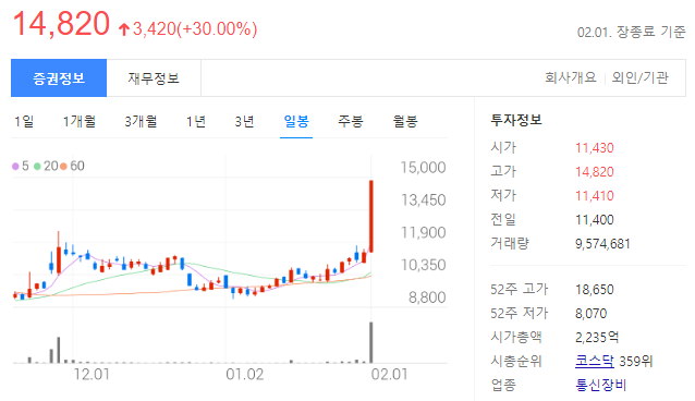 이와 관련하여 위성통신 관련주가 상승하는 흐름을 보였다.