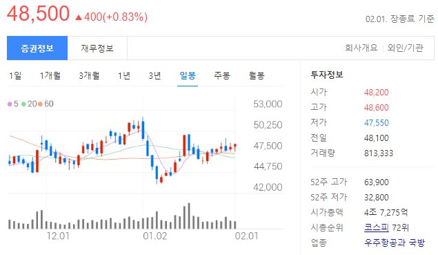 - 매출은 방산사업 47%, 항공엔진 24.7%, 시큐리티(CCTV) 18.7% 등으로 이루어져 있다.