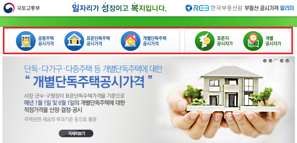 아파트 등은 공동주택 공시가격, 단독주택이나 다세대주택 그리고 빌라 등은 단독주택 공시가격으로 구분해서 공개하고 있다.