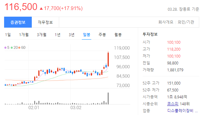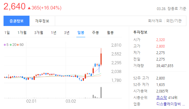 - 시가총액이 1.8조여서 매출의 성장성을 확인하고 주가가 상승할 가능성이 높다.