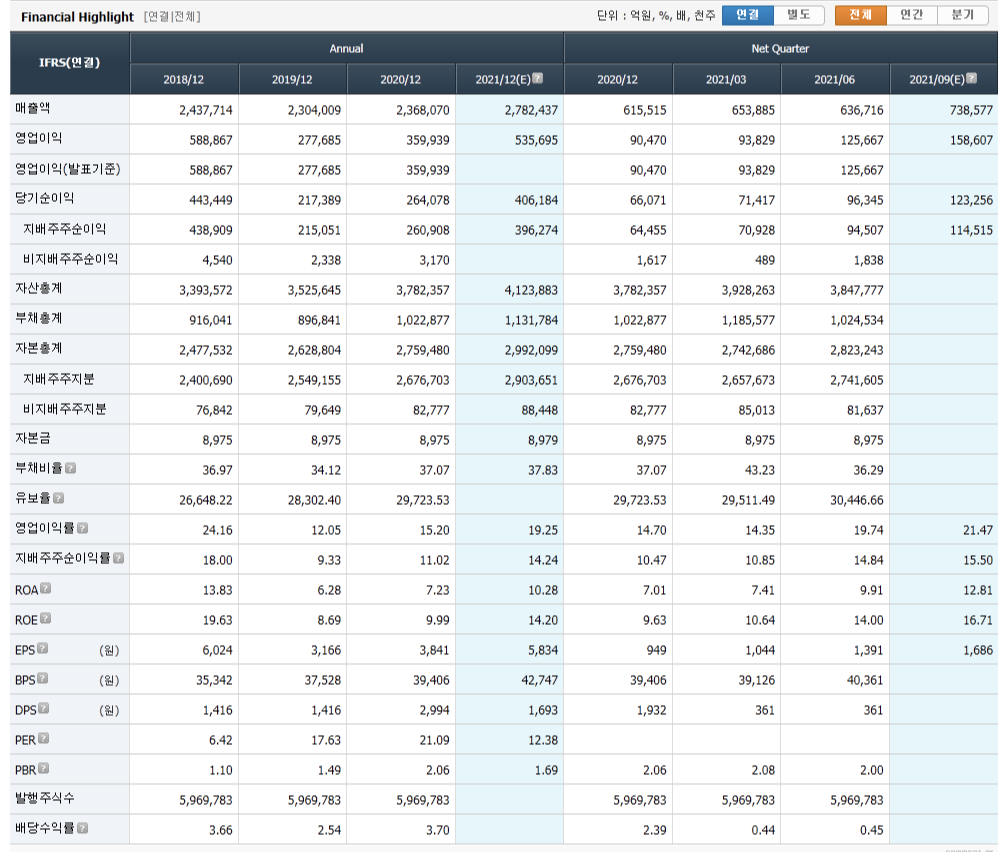 이러한 호황기를 업고 삼성전자는 매출액 278.2조라는 최고의 실적을 보여주었다.