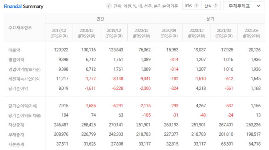 대한항공은 코로나19로 인하여 비행기를 이용하는 고객의 수요가 감소하여 2020년 최저 실적을 기록했다. 하지만 최근에는 항공화물의 수요가 증가하여 실적이 개선되고 있으며 타 항공사에 비해 코로나19의 피해를 최소화했다.