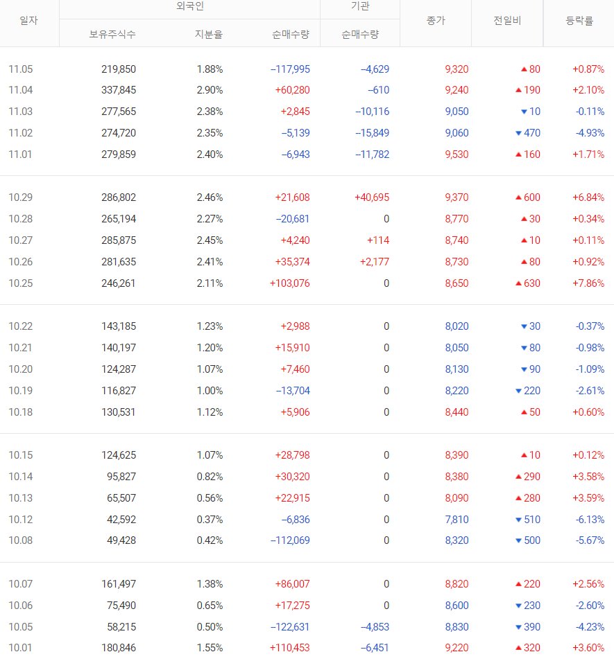 ㄱ) 10월 1일부터 현재까지 개인은 25.3억원 매도, 외국인 22.1억원 매수, 기관 0.97억원 매수하였다.