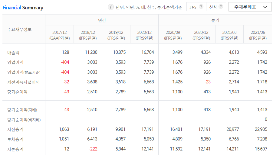 ㄴ) 현재 계열회사는 총 22개사(비상장)이며, 라이징 윙스, 블루홀스튜디오, 스콜, 레드사하라 스튜디오, 비트윈 어스 등 국내 5개사, 해외 17개사임. 2021년 8월 10일 KOSPI 시장에 신규 상장하였다.