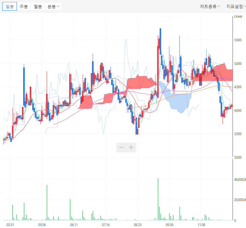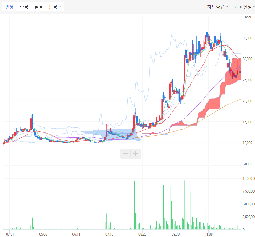 ㄱ) 신규 상장된 종목이라서 차트에 대한 분석은 크게 나타나지 않는다.